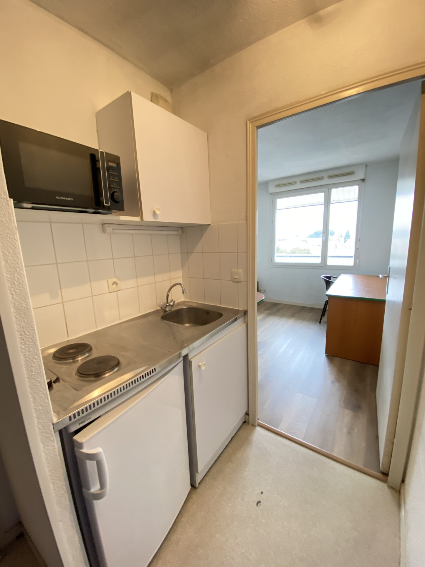 MERIGNAC - CHU - Hôpital Pellegrin A 50m du tram ligne A - Arrêt Peychotte et de tout commerces (pharmacie, supermarché, pressing, banques, restauration ...) Appartement de type 1 meublé dans une résidence avec gardien, laverie, local vélo, piscine. Entrée, séjour avec placard, une cuisine indépendante équipée, une salle de bains. Equipements : lit, table, chaises, bureau, réfrigérateur, rangements. Les charges comprennent l'eau froide et l'entretien des parties communes. Disponible le 01/03/2026