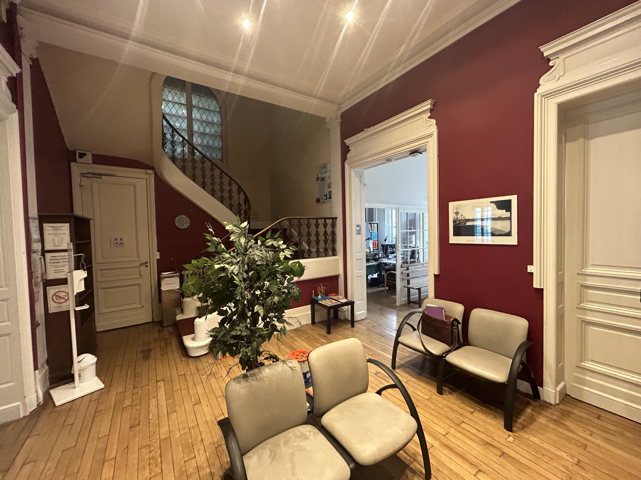 D’une superficie d’environ 450 m², l’immeuble se déploie sur quatre niveaux et offre 17 pièces spacieuses, lumineuses et parfaitement adaptées à un usage professionnel ou institutionnel. Parquets anciens, moulures, hauteurs sous plafond, cheminées et volumes généreux confèrent à l’ensemble un cachet remarquable et une atmosphère prestigieuse.