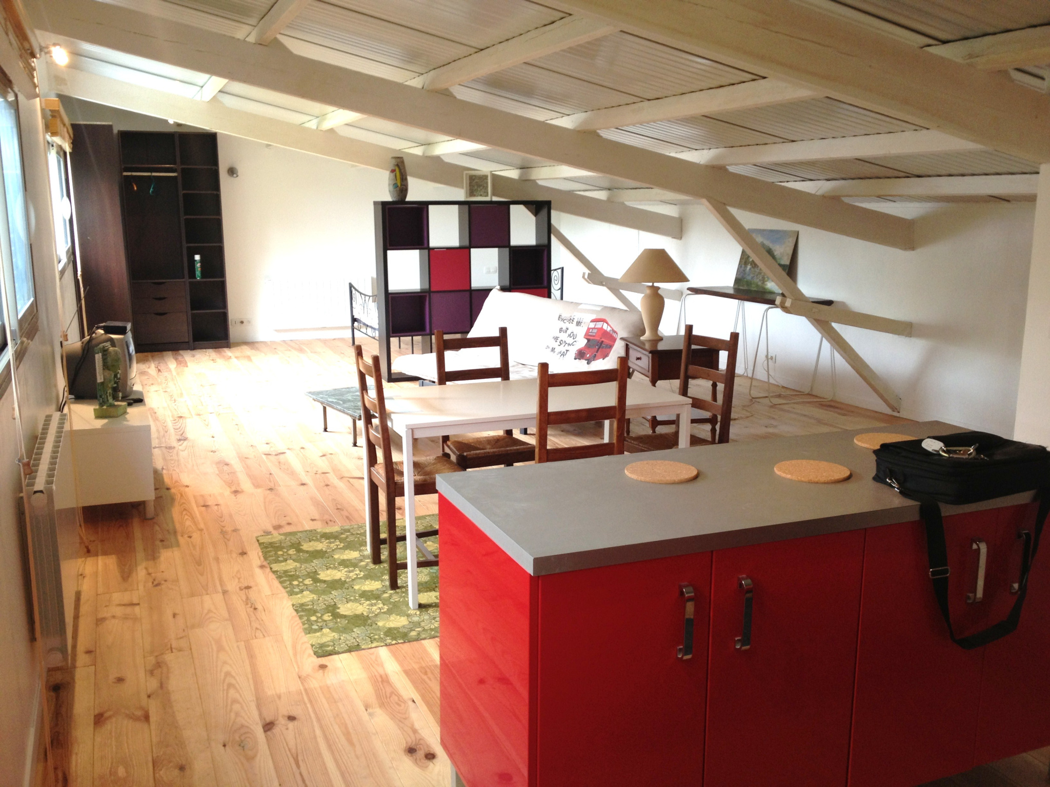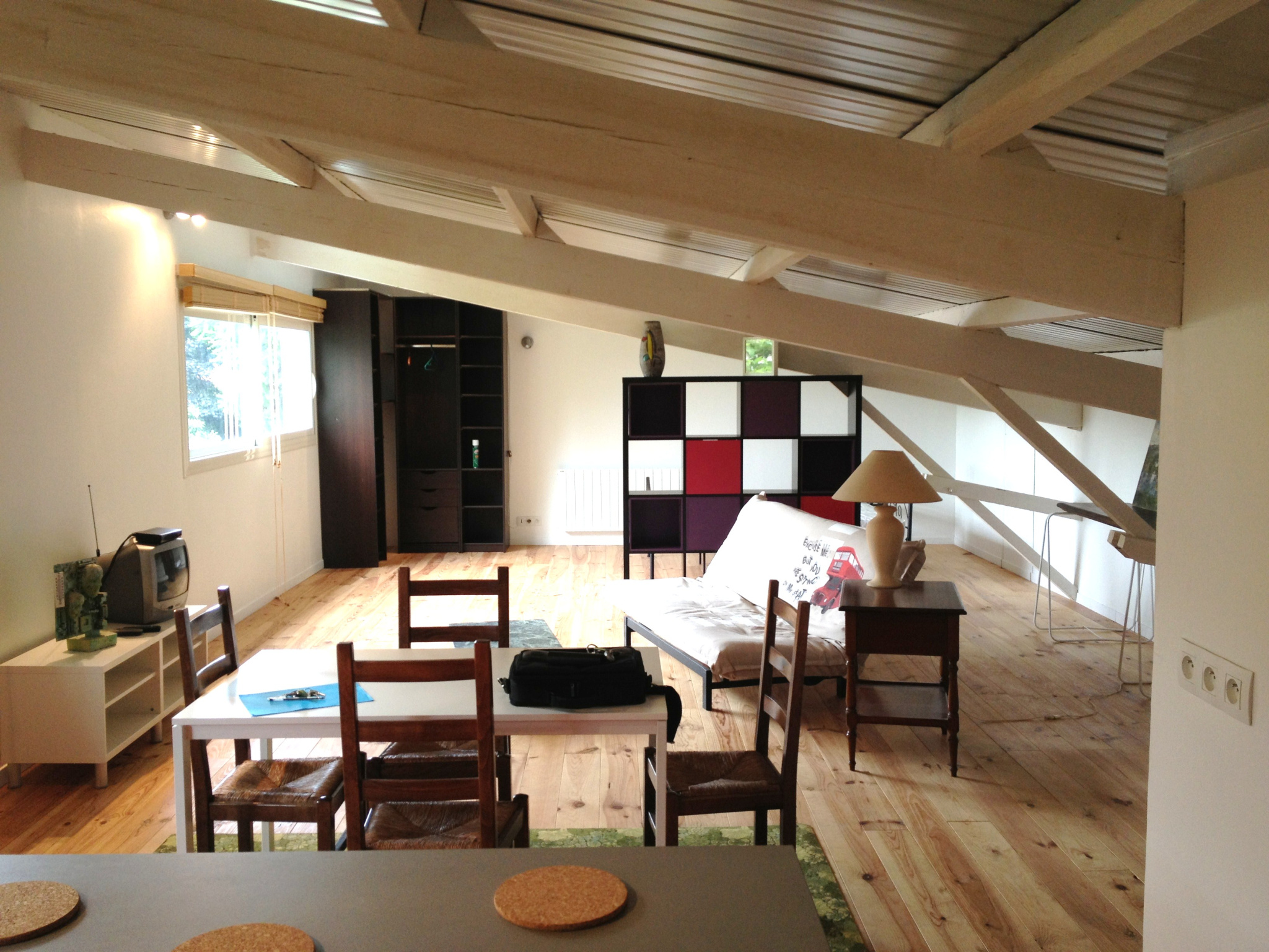 MERIGNAC / PARC BOURRAN - Rue Bir Hakeim, grand loft meublé, CALME et LUMINEUX de 71m² au sol et 56m² en carrez. Il comprend une entrée avec placard, un vaste séjour avec une cuisine ouverte, une coin salle à manger, un coin nuit et une salle d'eau avec toilettes. Double vitrage. Chauffage électrique. A 5 minutes à pied du Parc Bourran, et à deux pas des lignes 11 et 46. DISPONIBLE LE 10/11/2025